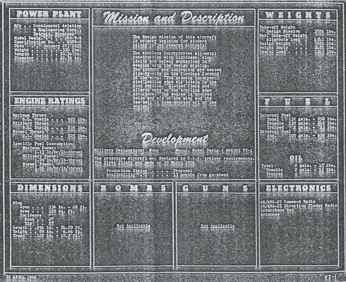 In February 1952, the application for a type certificate was made, and the name Wee Jet 880 officially registered. By then, Dale-Air Engineering was given several smaller research and development jobs, including certified tip tanks for the Navion.
